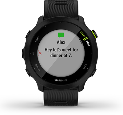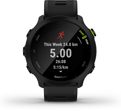 | Kui sina teed oma igapäevaseid toimetusi, jälgib Forerunner 55 sinu samme, intensiivsusminuteid ja palju muud1. | Vaata, kas päev on rahulik, tasakaalustatud või stressirohke. Lõõgastumise meeldetuletused soovitavad sulle isegi lühikesi hingamisharjutusi. | Jälgi oma keha energiataset ning saad teada, millal on parim aeg tegutsemiseks ja millal puhkamiseks. |