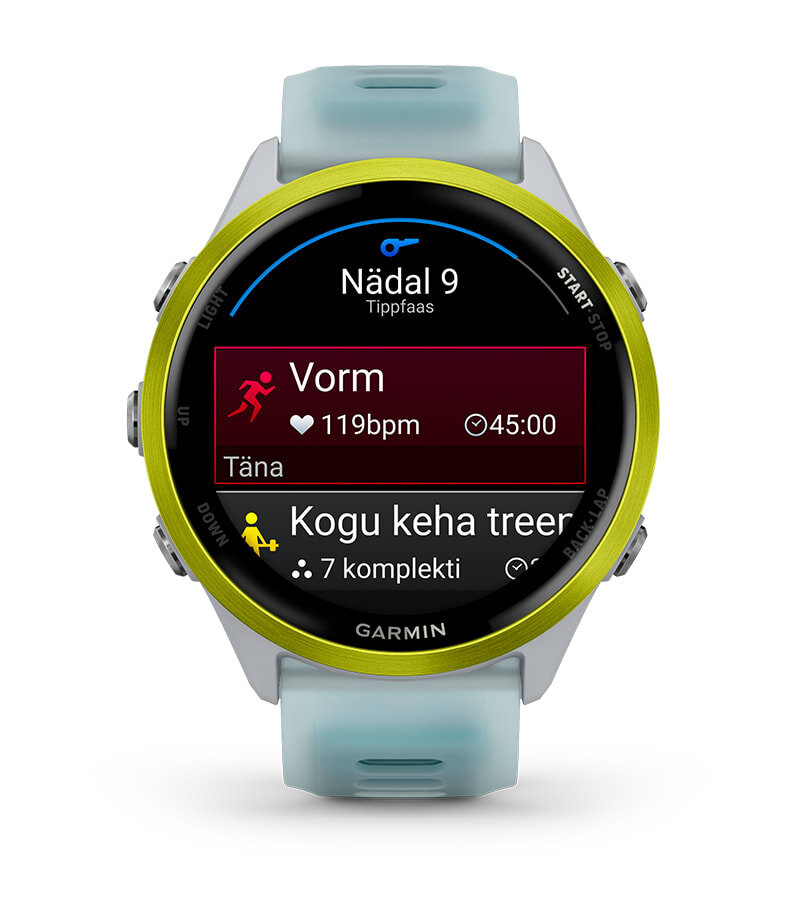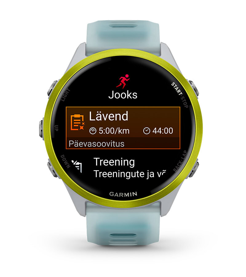 | Treeni ürituse jaoks, saavuta eesmärk või paranda oma vormi Garmini treener treeningplaanid jooksu, triatloni, jalgrattasõidu või jõutrenni jaoks. Valitud plaanid kohanduvad igapäevaselt su sooritusvõime, taastumise ja tervise järgi, et luua isikupärased treeningud. | Kohe kui ärkad, saad oma unekvaliteedil, taastumisel, treeningukoormusel jpm põhineva valmisolekuskoori, et saaksid otsustada, kas oled sel päeval pingutuseks valmis või peaksid rahulikult võtma. | Kasutades selliseid indikaatoreid nagu HRV olek, sinu hiljutiste treeningute ajalugu ja VO2 max, saate lihtsa ülevaate treeningu tõhususest ja tead, kas treenid produktiivselt, oled tippvormis või pinges. |